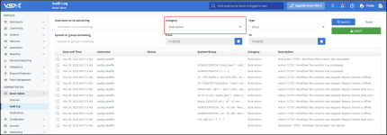 In this release, device-level results can be viewed from the Audit Log by selecting the new Bulk Action category: