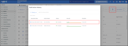 The progress and results of the bulk action can be viewed by clicking the Bulk Action History button: