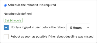 This release makes the patching reboot on end devices more predictable by displaying reboot prompts in advance. An end user can either postpone the reboot or execute it right away.
