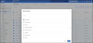 In this example, the user has selected the Run Workflow bulk action and is required to select a workflow to continue: