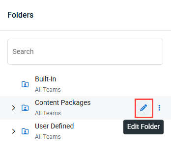 NOTE This option is only available for folders within the Built-In, Content Packages, and User Defined folders, not the named folders themselves, as they are at the top level.