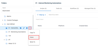 Several folder management tools are available in the Automation Hub to help you organize your automation components.