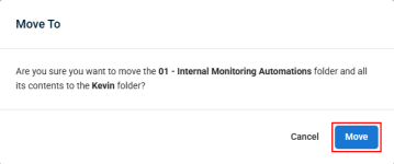 - Click Move in the confirmation pop-up that appears to complete the move. If a folder of the same name exists in that location, you will be prompted to rename the folder you are moving.
