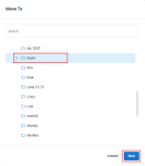 - In the pop-up that appears, select the location you want to move the folder to, then click Next.