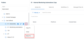- In the Automation Hub, hover over the folder you wish to move, click the action menu, and click Move To.