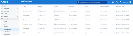 From the left navigation menu in VSA 10, navigate to Automation > Workflow History.