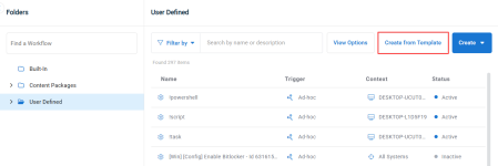 The Workflow Template library can be accessed by navigating to a location within the User Defined folder, and clicking Create from Template. This will open the Create from Template window.