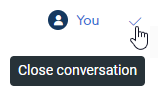 To close a conversation, it must be assigned to your user account. In the upper-right corner of the page, click the check mark next to You. The conversation will be automatically archived into the Closed inbox. Refer to Open/Close. If a message is sent in a closed conversation, the conversation is automatically reopened and returned to the Open inbox. |