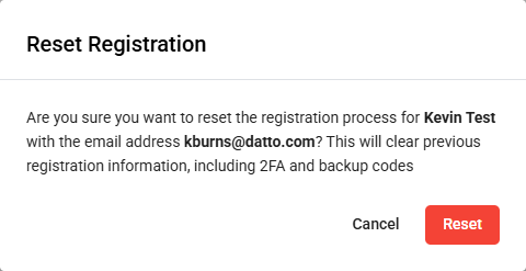 Click Confirm to reset the user's 2FA. This will send the user an email letting them know that their 2FA settings have been reset, and that they will need to reconfigure them upon their next login. Click Cancel to close out of the dialog box.