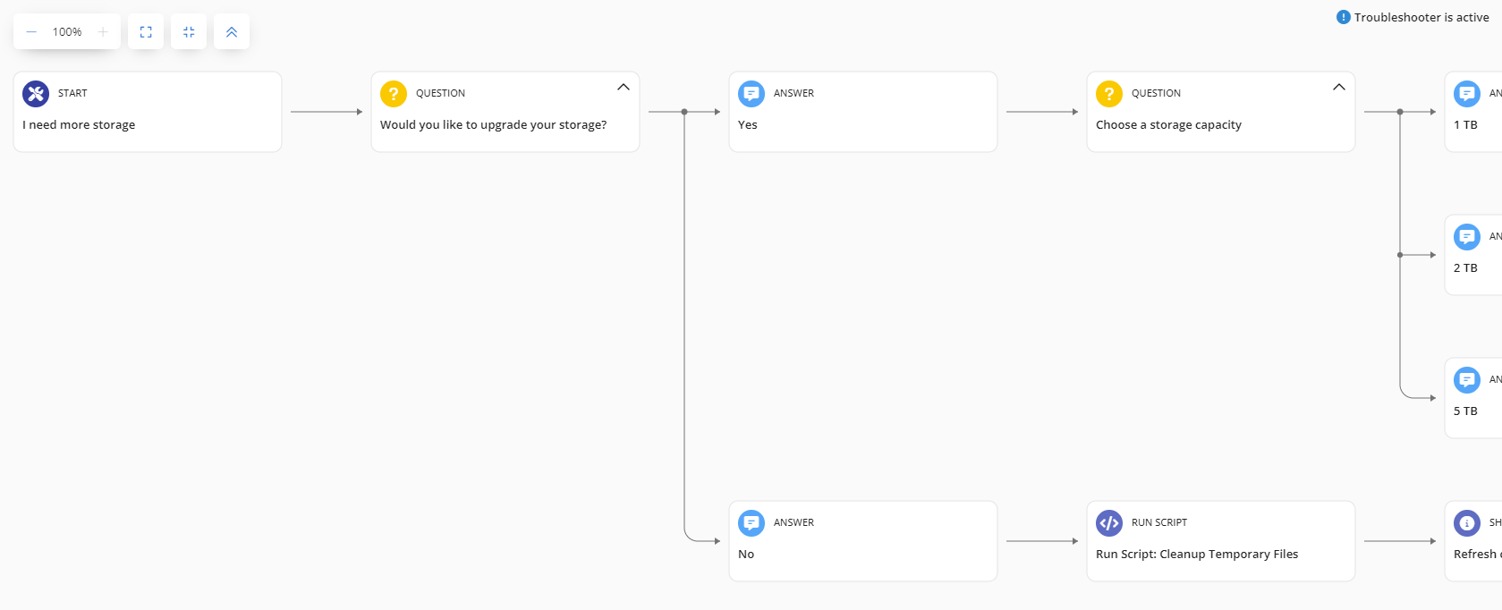 - Troubleshooters include conditional logic, allowing for different actions based on specific conditions or criteria. This ensures flexibility in handling various scenarios.