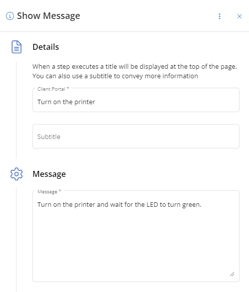 | Title | Enter the title that will be displayed at the top of the page when a step is executing. |