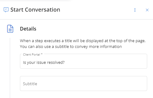 The Start Conversation pane is closed and the action is configured as a step in your troubleshooter.