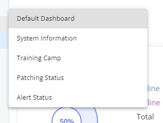 , respectively. To open a specific dashboard, click the drop-down arrow next to the current dashboard name to open a menu of the dashboards you have access to, then select any dashboard from the menu.