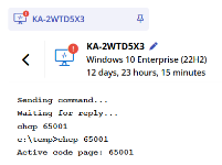 - The device details pane will pivot to a remote terminal session on the selected device. You can issue commands via the input box at the bottom of the pane. To send a command, click Run or press Enter on your keyboard.