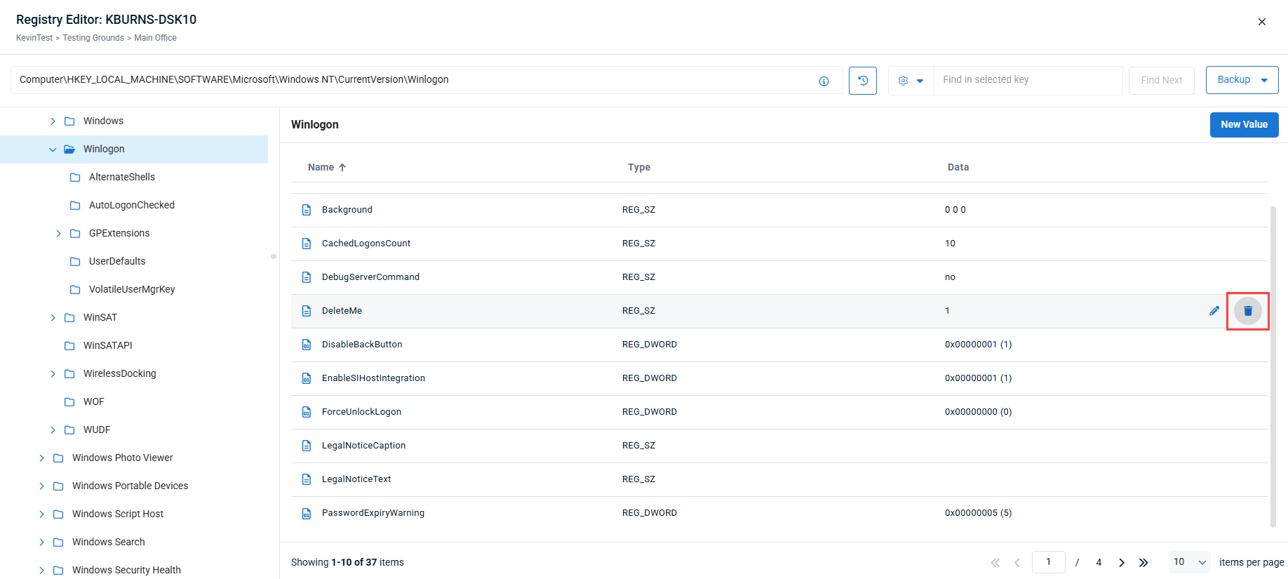 NOTE Before deleting any registry key values, it is recommended you first create a back-up. To learn how to create a registry back-up, refer to Back up the registry.