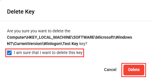 - In the Delete Key pop-up that appears, check the box next to I am sure that I want to delete this key and click Delete to confirm deletion and close the pop-up.