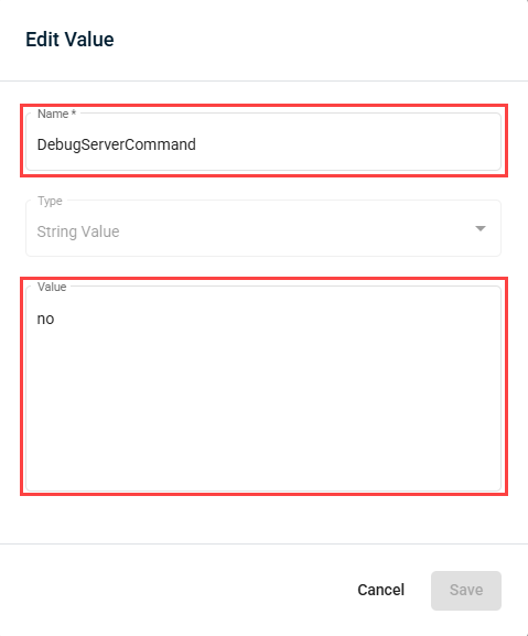 - In the Edit Value window, edit the Name and Value fields as needed.