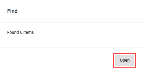- A progress window will pop up, after which a results window will pop up with the number of search results. To view your search results, click Open.