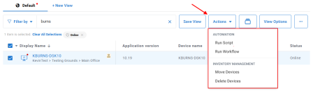 Actions | Allows you to initiate actions against one or more selected devices. Refer to Actions that can be performed against devices. | ||||||