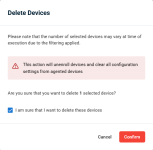 IMPORTANT Deleting a device from VSA will unenroll it and clear all configuration settings. Please review the deletion confirmation pop-up and click Confirm if you are sure you wish to delete the selected devices.