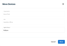 - Move Devices: Move selected devices to a different agent group. Use the Agent Group drop-down to select the new location.
