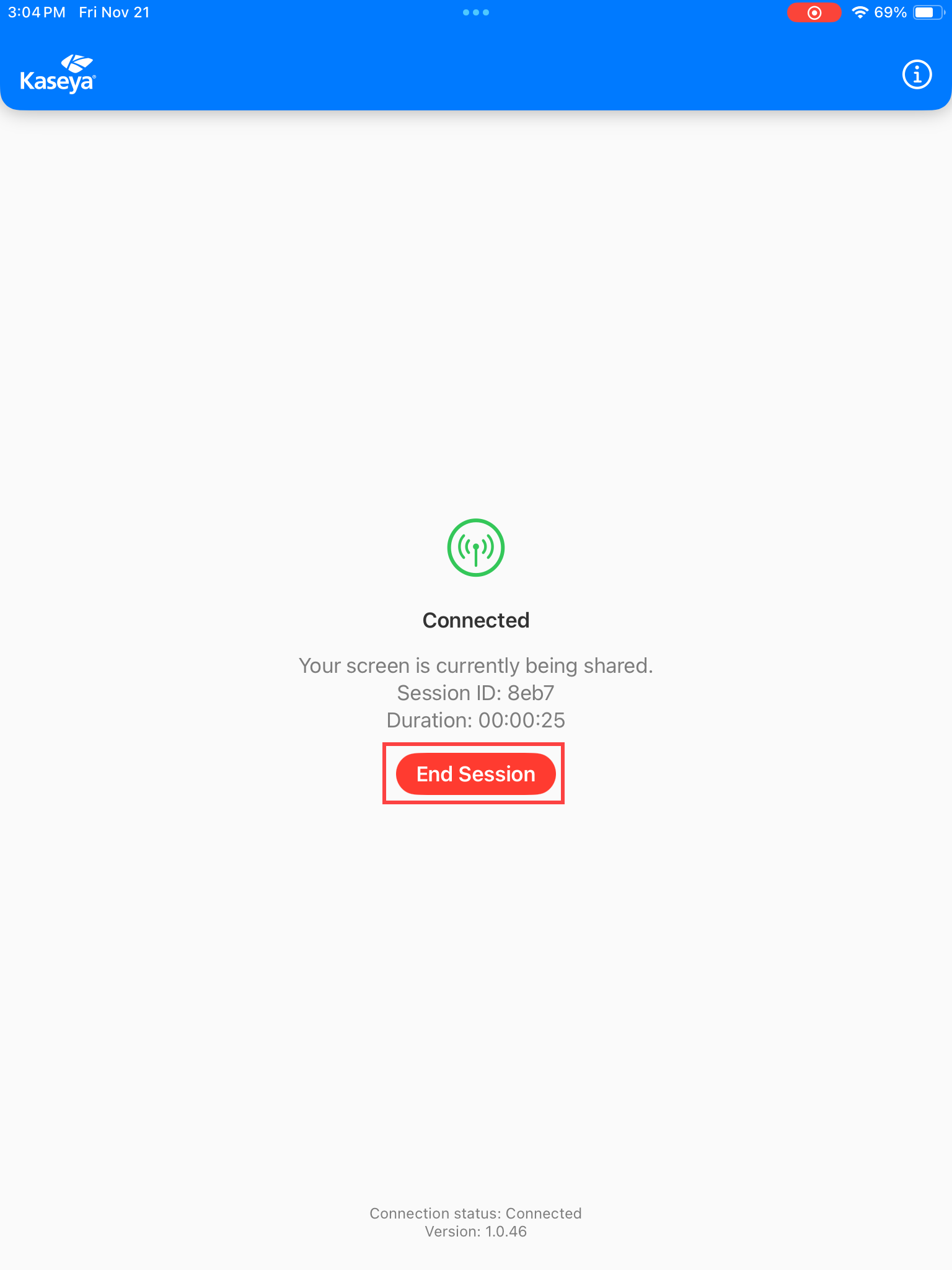 To end the Remote View session from the remote iOS device, first have the end user open the Kaseya Go app.