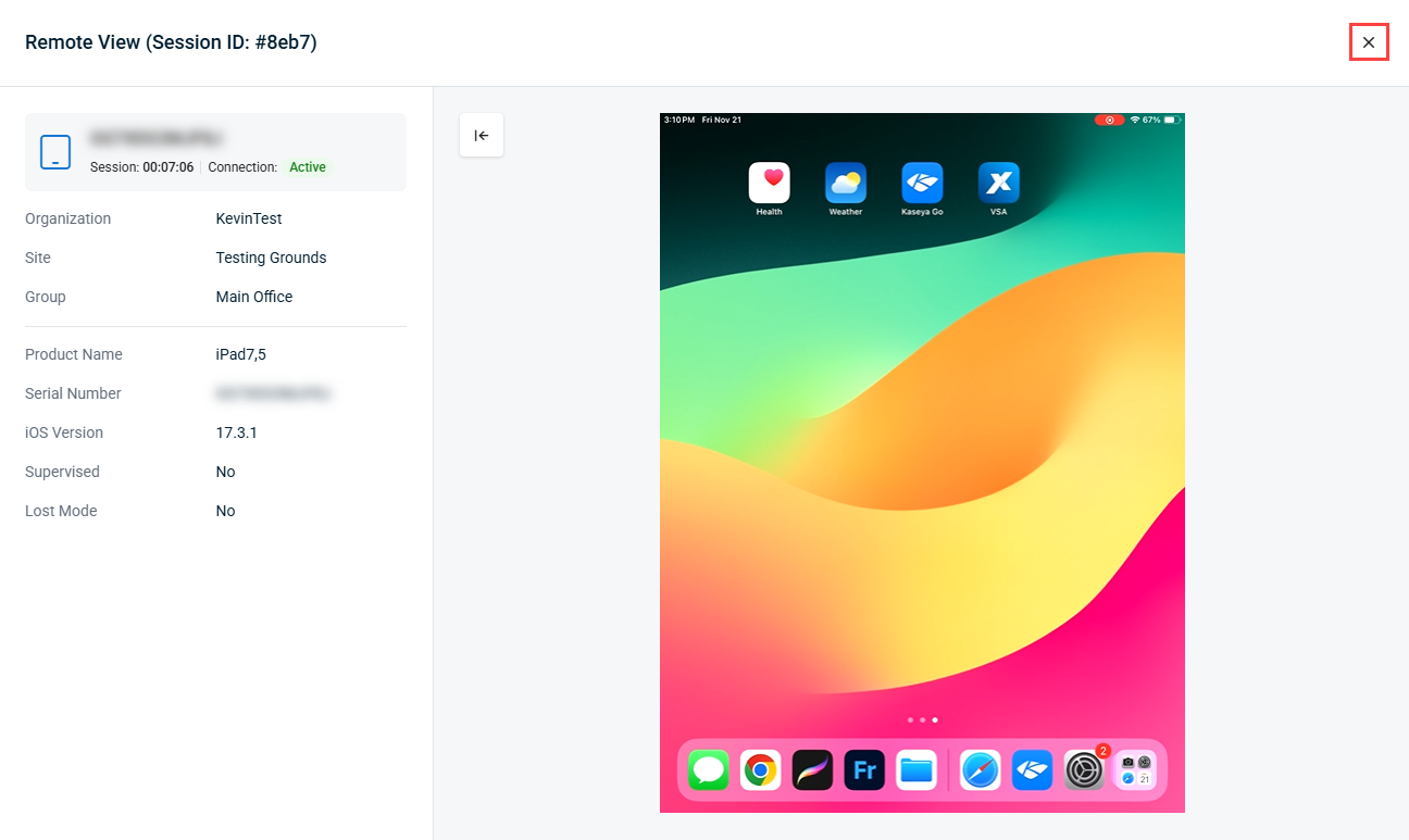 In VSA 10, you can utilize Remote View to view the screen of MDM enrolled iOS devices, streamlining troubleshooting and support.