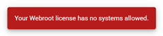 If you follow the steps above, depending on how your Webroot account is integrated, you may receive the error Your Webroot license has no systems allowed at the bottom of the page: