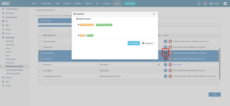 After accounts are mapped, you will see an icon in the Mapped column. Actions can be performed from the Account column.