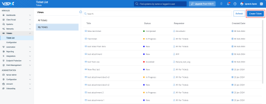 Click Tickets in the left navigation menu to access the live ticketing feature. From this page, you can view, create, update, and monitor the real-time status of tickets that are being resolved.