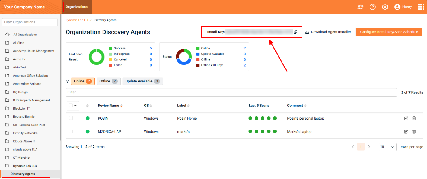 BEFORE YOU BEGIN In the RapidFire Tools portal, copy the Install Key for the organization where you want to deploy the Compliance Manager agent.