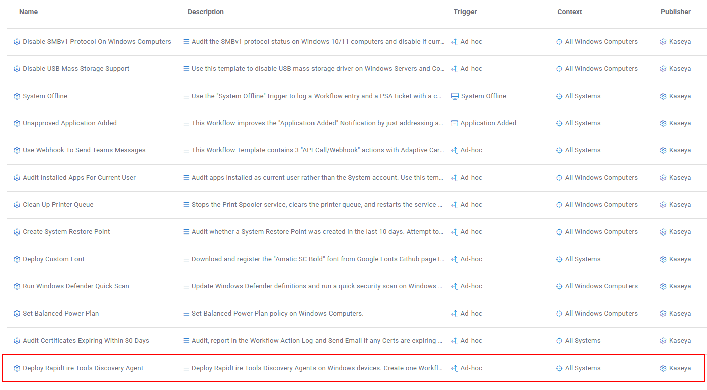 Using a workflow template, you can easily manage the deployment of the RapidFire Tools Discovery Agent on Windows machines.