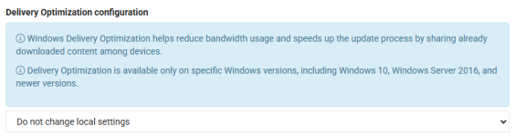 Do not change local settings (default option) | Does not enable, disable, or change any locally configured Windows Delivery Optimization settings. |