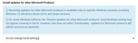 Does not enable, disable, or change the locally configured Receive updates for other Microsoft products settings. |