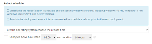 The Reboot Schedule section allows you to schedule when any post patching reboots, if required, take place.