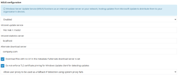 Do not change local settings (default option) | Does not enable, disable, or change any locally configured WSUS settings. |