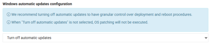 - We recommend turning off automatic updates to have full control over deployment and reboot procedures.