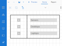 - From the report toolbox on the left, drag and drop the Container element into the design area.