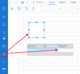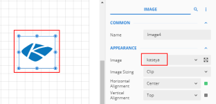 - From the report toolbox on the left, drag and drop the Image element into the design area. You can also add it to a table cell.
