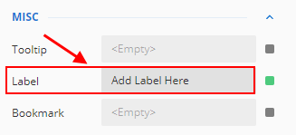 If you are unable to see the Label property, or are missing the Misc section entirely, ensure that you are in Show Advanced Properties mode:
