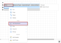 - Right-click the detail cell of the new column and choose the Cell Expression option from the context menu. Alternately, you can set the Value property in the Properties panel to Expression.
