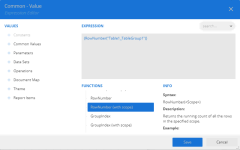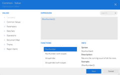 - In the Expression Editor, double-click the RowNumber property under Common Functions > Miscellaneous on the left.