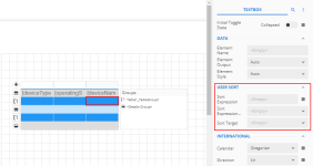 - Go to the Properties pane on the right, and in the User Sort section, find the Sort Expression property. This property contains the name of the field or an expression based on which you want to sort the data.