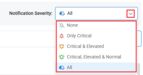 Additionally, you can choose the severity of the notifications you want to receive in the Notification Severity drop-down.