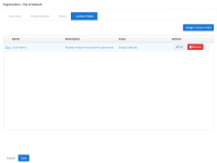 Delete | Deletes the organization IMPORTANT You can only delete organizations that do not contain sites or agent groups. |