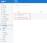 Global policies are now listed in a separate section of the Configuration > Policies page. Other root level policies, which may be assigned to organizations or lower level entities, are listed under Organizational Policies.