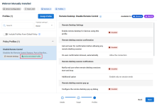 - Non-cumulative profiles are specific types of profiles that can be applied to a device only once because their settings are considered problematic for layering, which means their settings directly conflict if applied more than once. Examples of non-cumulative profile types can be found in Device Configuration profiles. For instance, you might want to enable Remote Desktop session confirmation for all your devices, so you would create a specific Device Configuration: Remote Desktop profile with that setting. Additionally, you may want to disable Remote Desktop session confirmation for a subset of devices, so you would create a second Device Configuration: Remote Desktop profile with that setting. However, each device can receive only one of these profiles, not both. In this case, when working within policies, intelligence is built in to prevent you from applying a second type of non-cumulative profile to the same targets that already have one assigned, and VSA 10 will present options to correct the conflict.