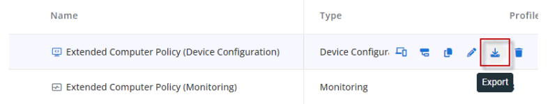 - Extensions: Used to change policy settings based on device exceptions. Extensions provide a way to make changes to a policy for a specific subset of devices without requiring creation of an entirely new and separate policy. For details, refer to Extensions.