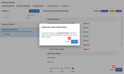 - Once finished, click Create and confirm your choice in the pop-up message to save and immediately apply your policy extension to the applicable devices.