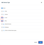 - In the pop-up that appears, check the box next to each device type you want this extension to apply to, then click Save to apply your changes.